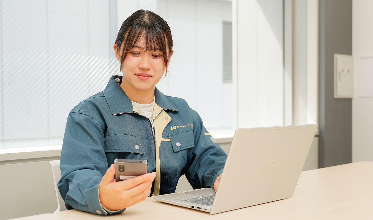 - 前職では飲食店の店長として勤めていたのですが、「なにか違うことがしたい」と悩んでいた時に、ワールドコーポレーションからスカウトメールが届いたんです。面談で話を聞いて、「面白そう」と思い入社を決めました!