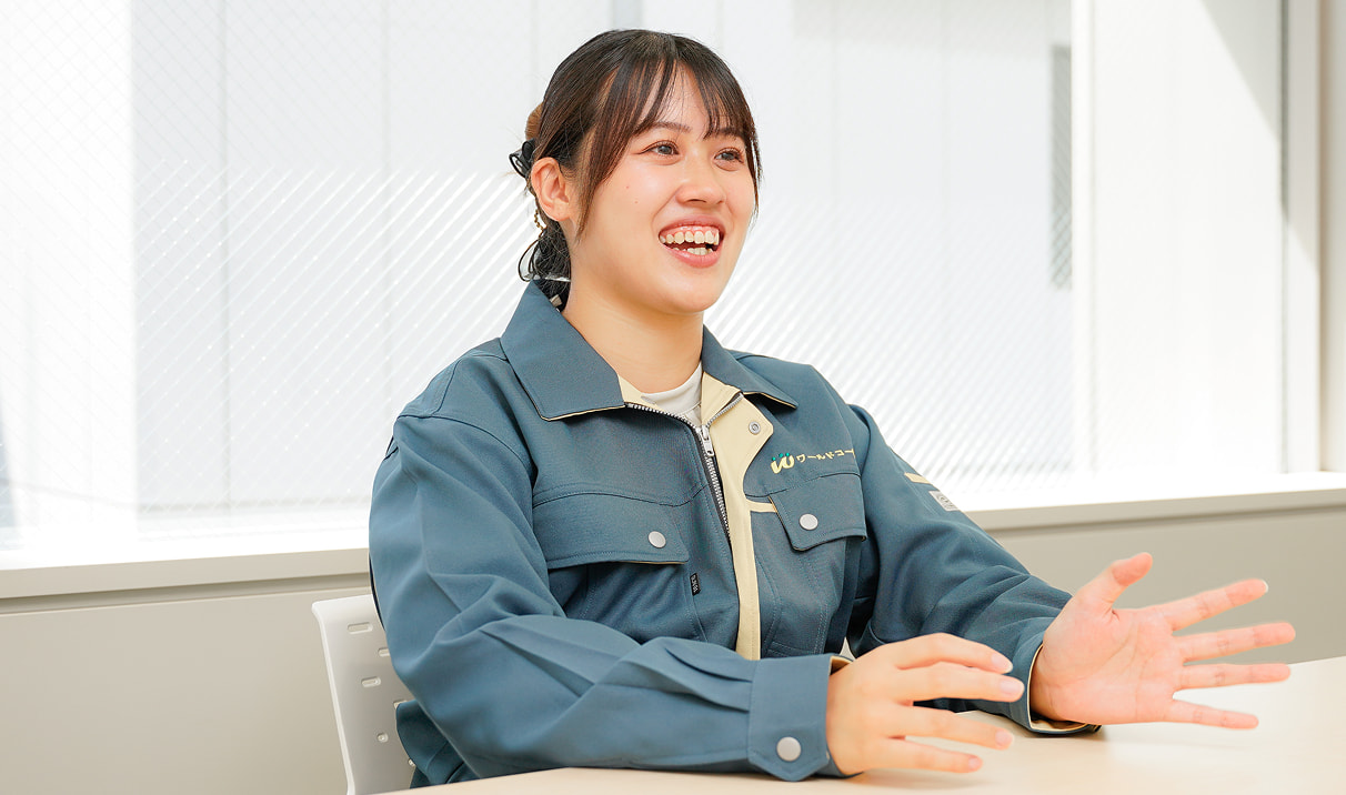 - 私も不安でいっぱいでしたが、現場の職人さんがあたたかく迎え入れてくださって、すぐに現場に慣れることができました。ぜひ、安心して来てください!