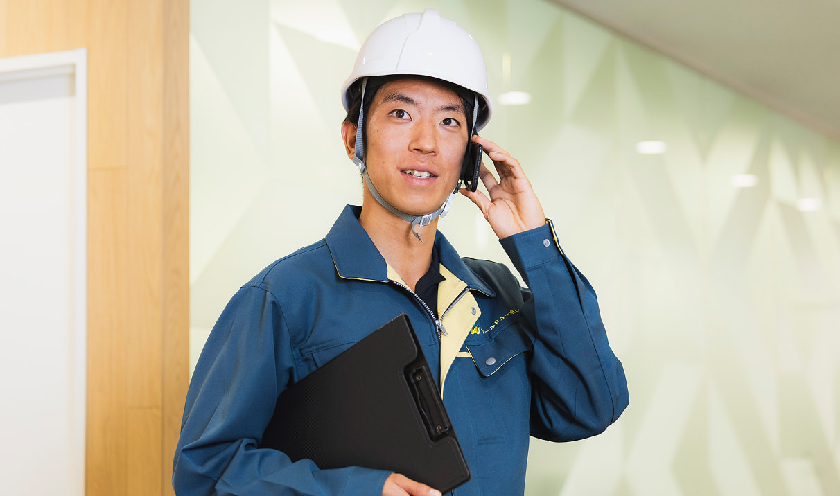 - 正直、異業種の会社という心配はありました。でも、幅広い工事や業界経験を積めるメリットもあって、経験の浅い人に対する理解・社風も根付いている会社です。配属後もとっても優しく仕事を教えてもらえるので、入社前の心配は吹き飛んじゃいました(笑)