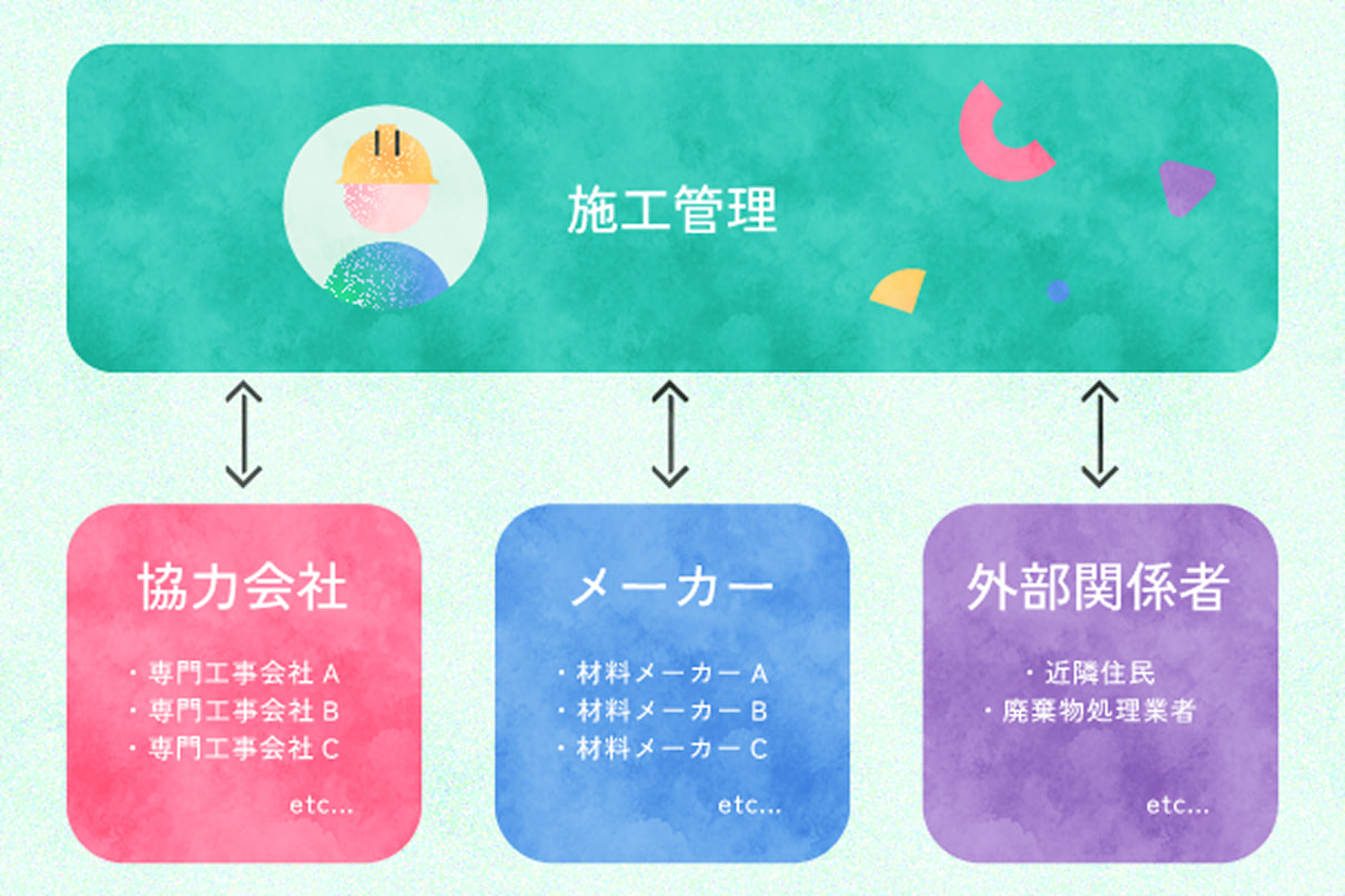 実際の作業に入ってからは、工事を進める「職人さん」を支えることが大切な役割です。