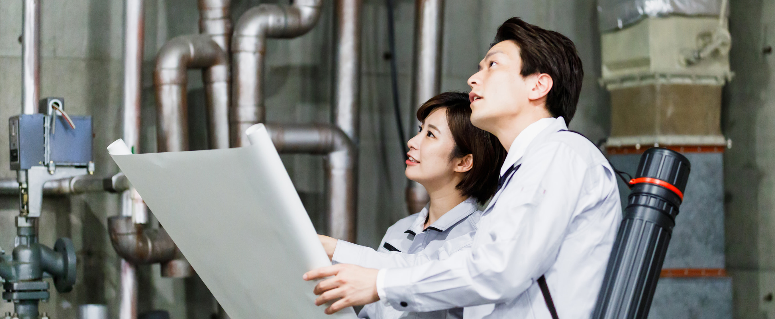 規模が大きいからこそ役割はしっかりと分担。「設備のプロ」を中心とした職人さんたちと一緒に、それぞれの工事を管理しながら施設を完成させ、実際に動くかどうかの保守点検までを支えていくことが、プラントの施工管理の仕事です。